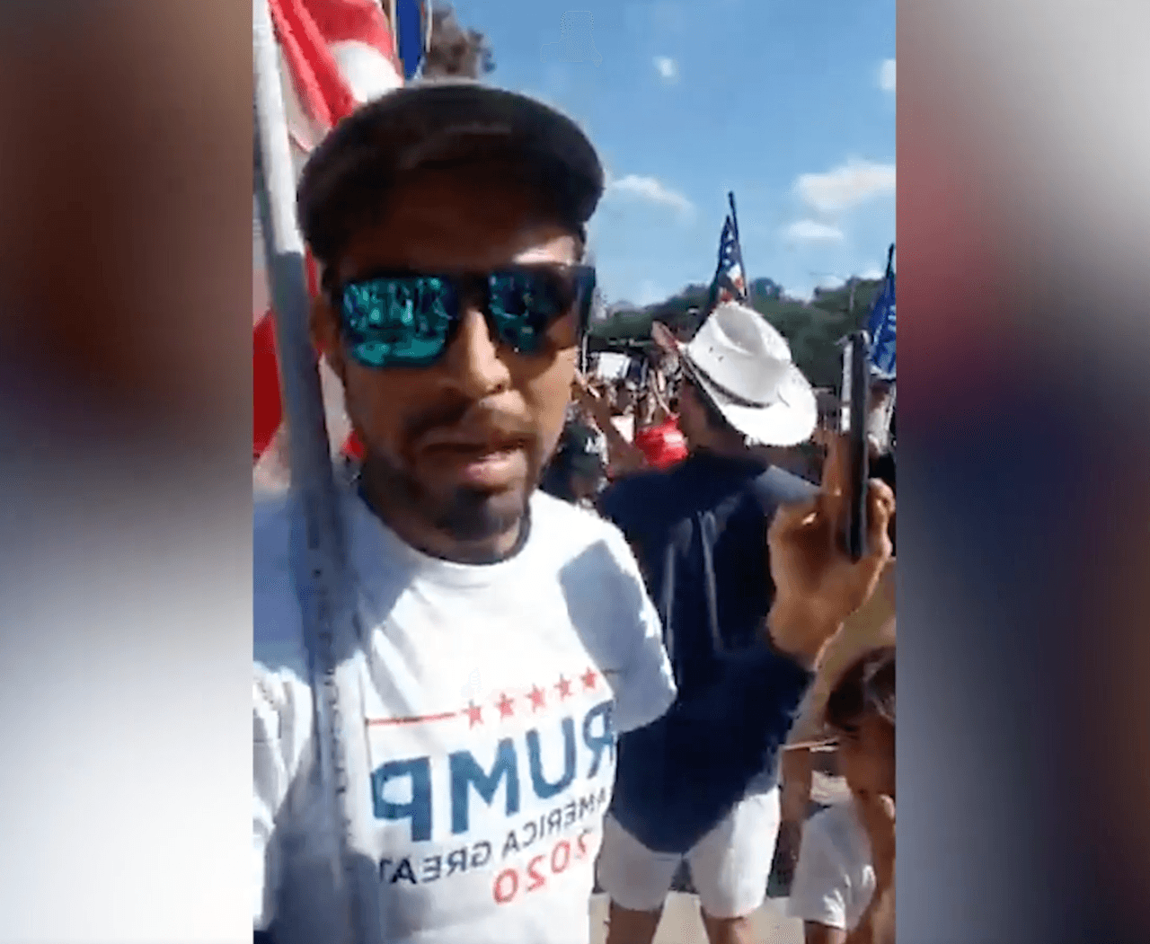 El partidario, que se identificó como mexicano, dijo que estaba en contra de Biden y que no le temía a las protestas violentas porque Dios estaba con su familia.