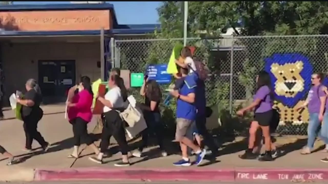 Docentes y padres de familia protestan ante el cierre de escuelas en Austin