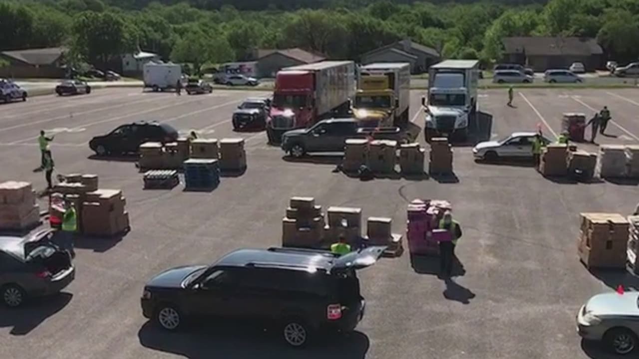 Decenas de automovilistas se formaron para recibir la ayuda del banco de comida desde las 8:00 am. Un evento similar ocurrió en la ciudad de Waco.
