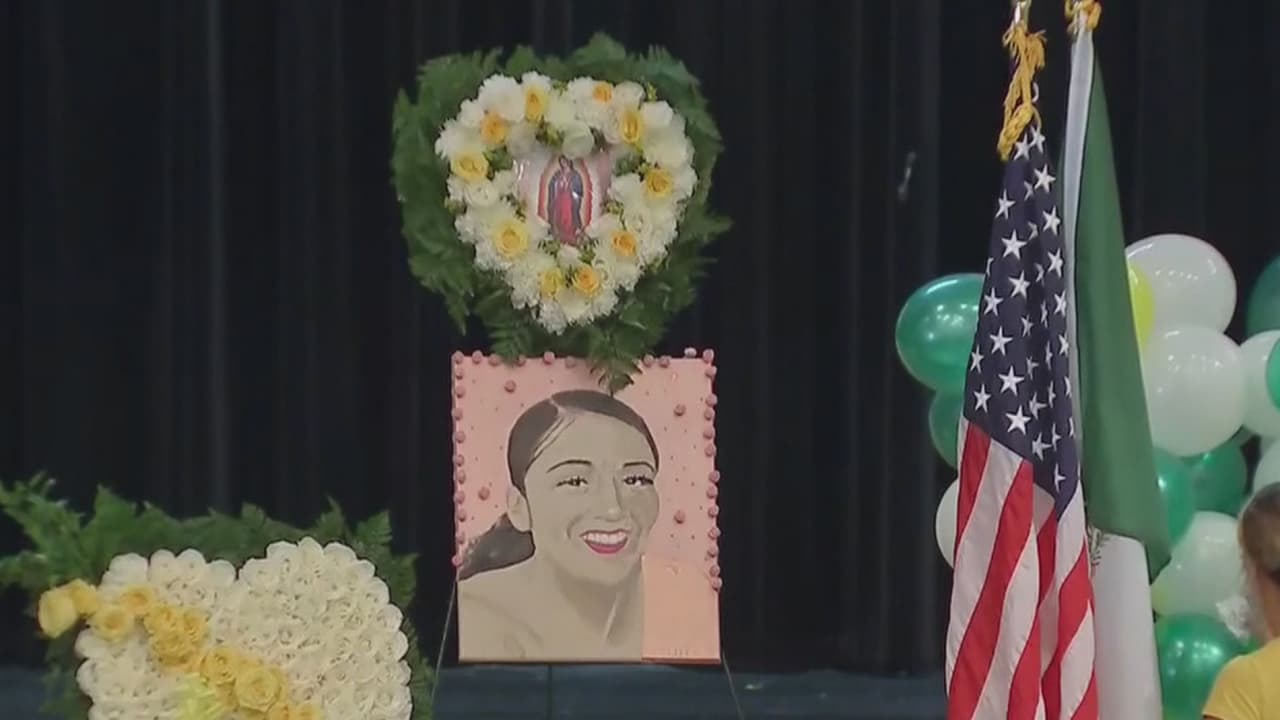 Los restos de la soldado llegaron a la preparatoria César Chávez para que familiares, amigos y miembros de la comunidad le den el último adiós.