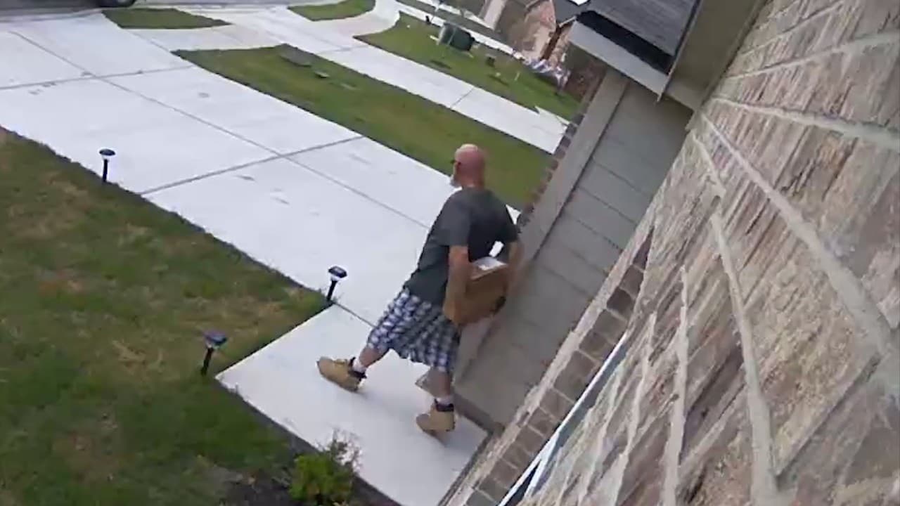 Cámaras de vigilancia captaron el momento en que un sujeto roba los paquetes de una casa en Liberty Hills, autoridades piden de la ayuda de la comunidad para identificarlo.