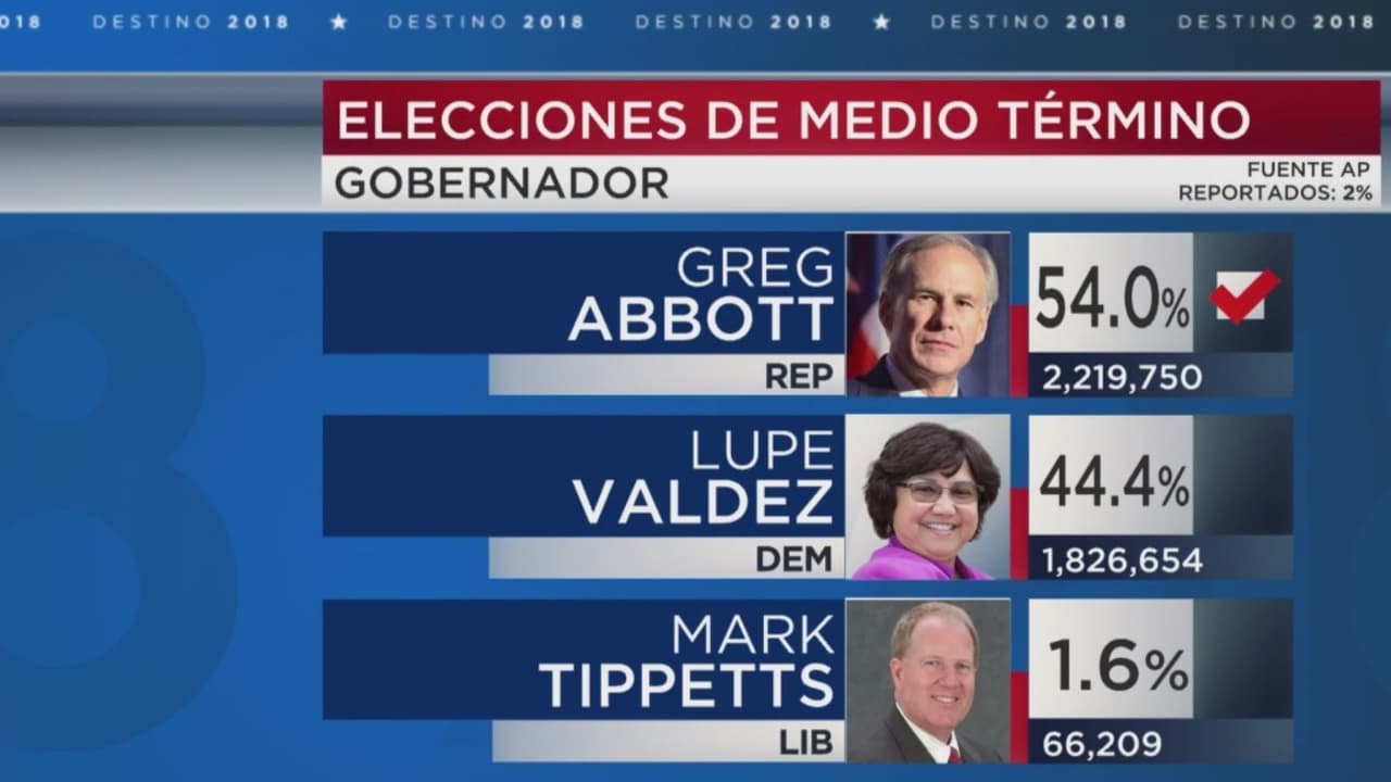 Abbott llevaba una cómoda ventaja sobre la exsheriff de Dallas, Lupe Valdez, la primera candidata hispana y gay en competir al máximo puesto estatal por uno de los principales partidos.