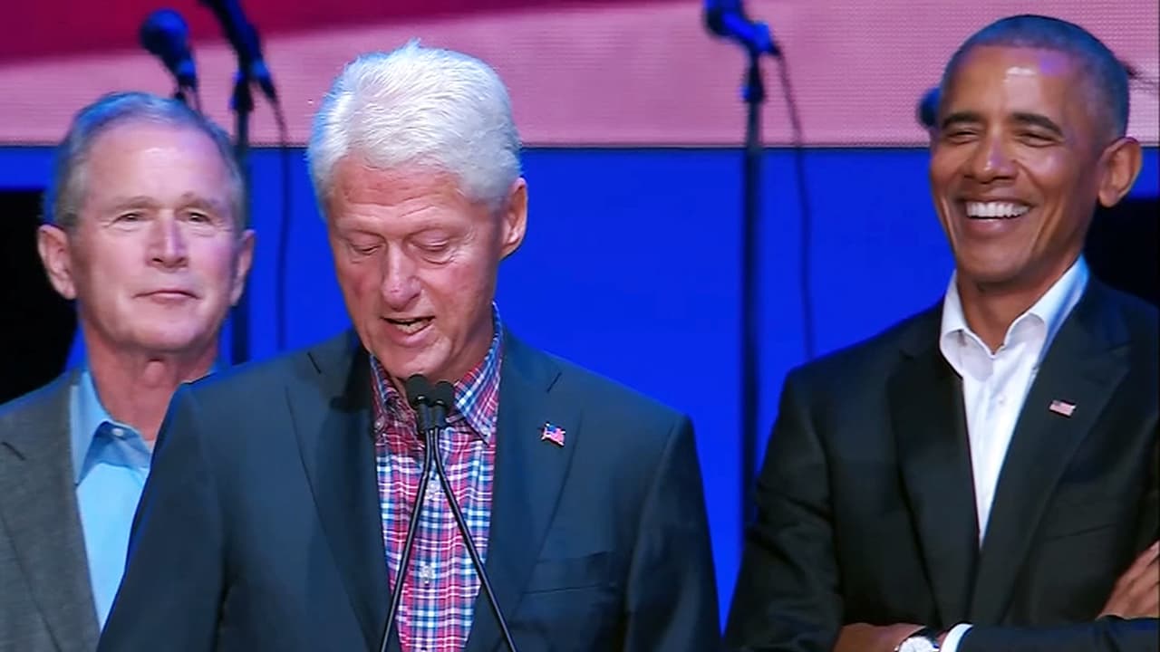 Como en una clase de secundaria, George W. Bush se acerca a su sucesor y Barack Obama arranca a reírse, mientras Bill Clinton daba un discurso durante el concierto benéfico "Deep From the Heart". La camaradería entre los exmandatarios se ha vuelto viral.