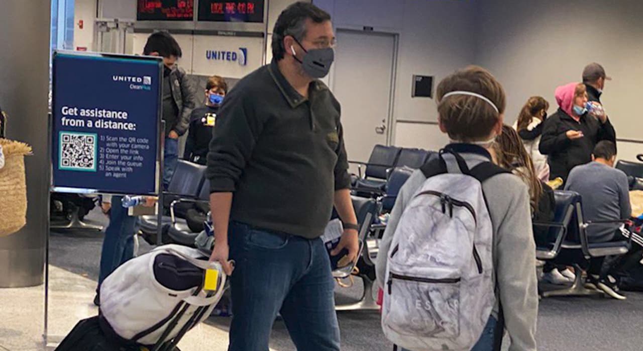 A través de las redes sociales, las imágenes del senador republicano en el aeropuerto con su familia para un viaje a Cancún se hicieron virales.