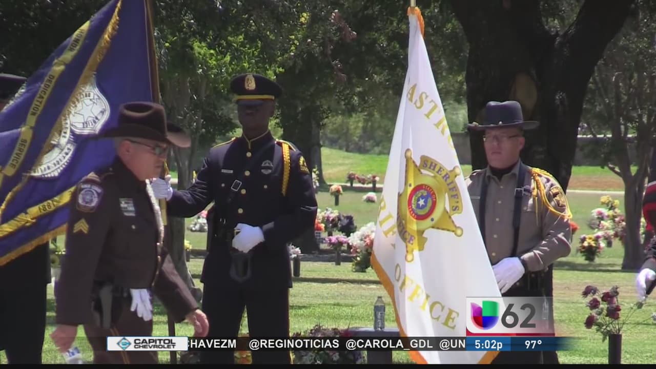 Amigos, familiares y colegas se dieron cita en el cementerio Cook- Walden, para dar el último adiós al oficial Craig Hutchinson, muerto a las afueras de su hogar por supuestos ladrones.