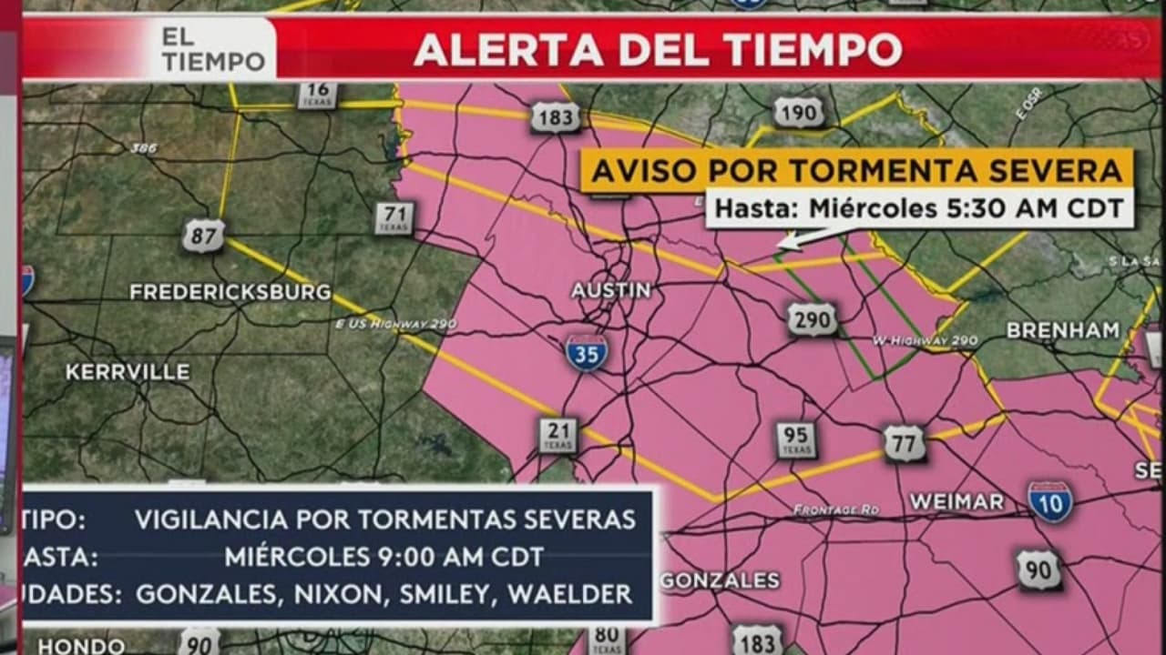 Emiten una alerta de tiempo severo para el centro de Texas