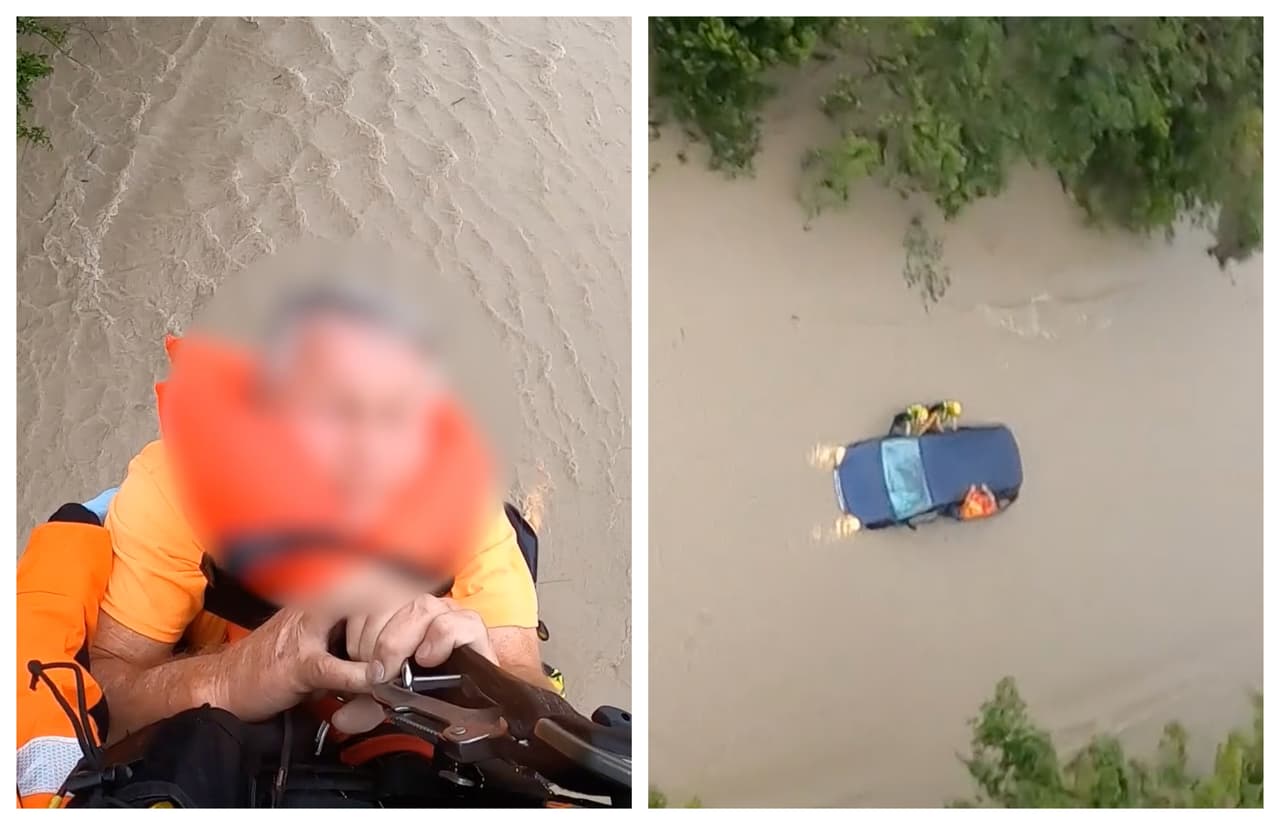 Así fue cómo un equipo tuvo que rescatar a un conductor que quedó atrapado en una inundación