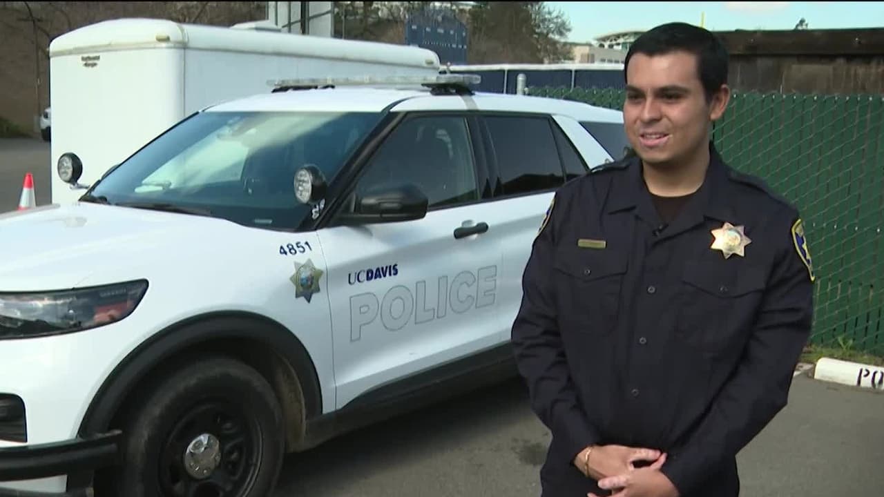 Cruzó la frontera con solo 5 años y llegó a California sin hablar inglés; ahora es beneficiario de DACA y el primer oficial de patrulla que recibe su placa de policía en UC Davis.