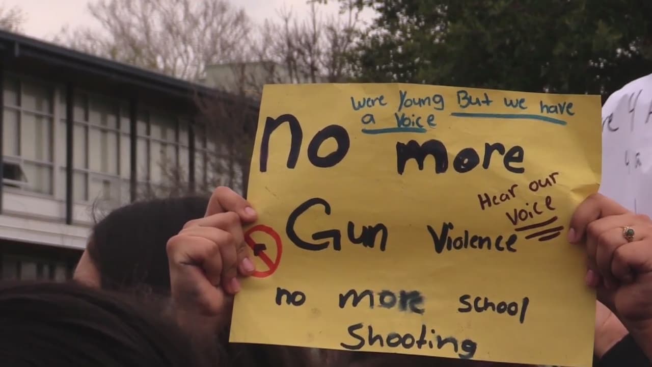 Cientos de estudiantes de Secundaria Burnet protestaron para exigir protección y el fortalecimiento del control de armas tras el tiroteo ocurrido en una escuela en Parkland, Florida.