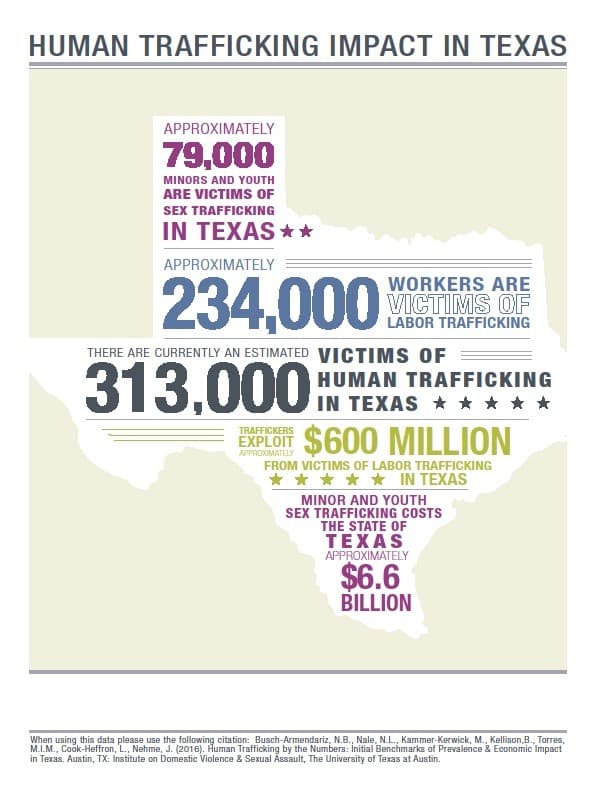 El reporte, elaborado por el Instituto de Violencia Doméstica y Asalto Sexual (IDVSA) de la UT, indica además que el tráfico de menores le cuesta al estado sureño 6.6 billones de dólares.