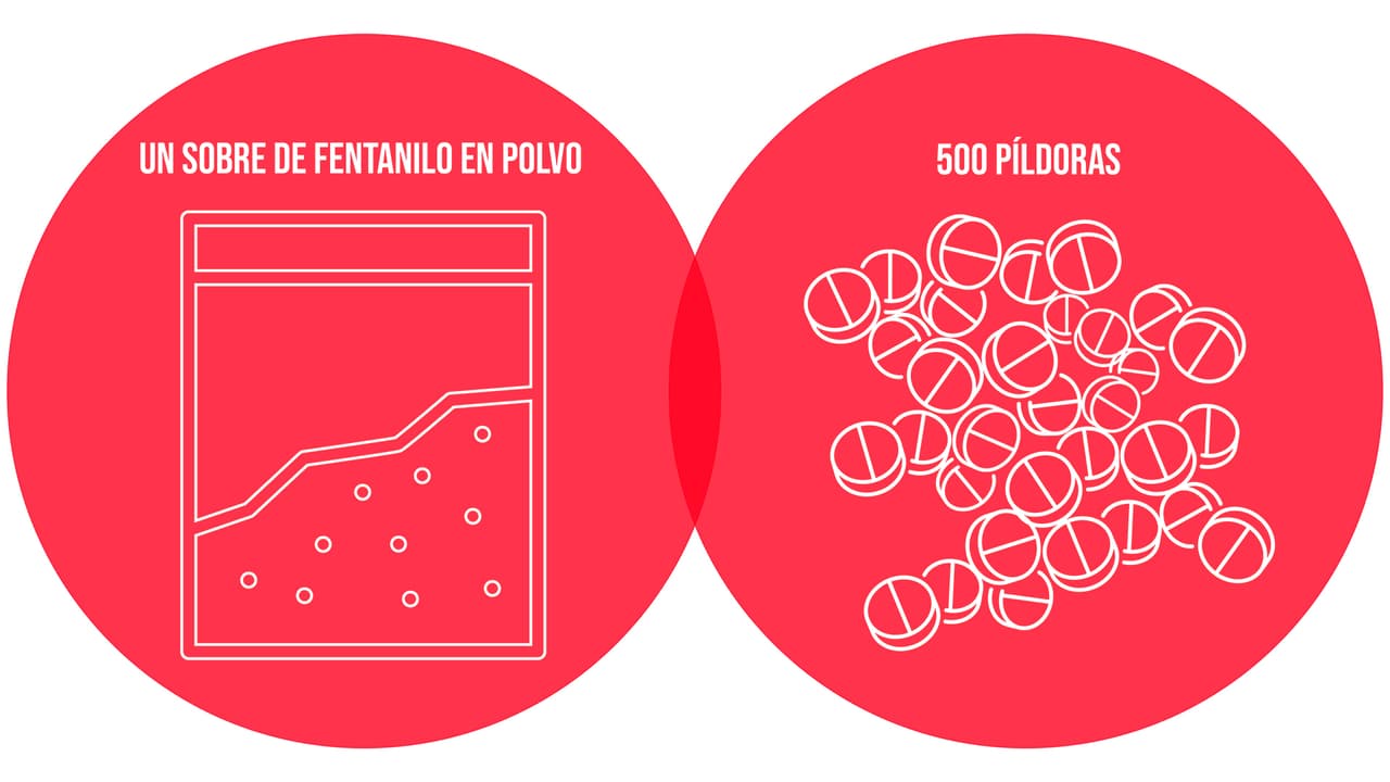 En algunas píldoras confiscadas han hallado entre 0.02 y 5.1 miligramos de fentanilo, más del doble de la dosis letal.
