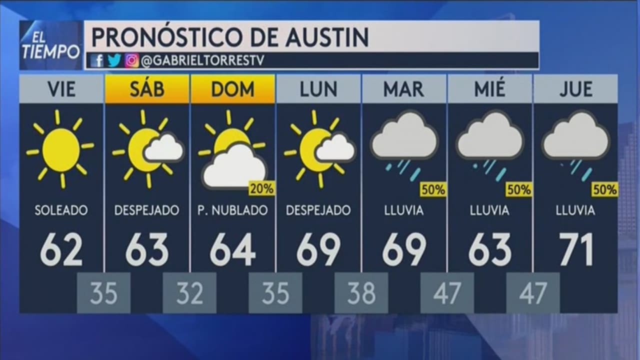 Se prevé un descenso en las temperaturas ante el paso de un frente frío se aproxima a la región, por lo que se espera que este viernes los vientos sean más intensos y las temperaturas mínimas sean de 35°F y las máximas de 62°. Para el fin de semana el mercurio continuará bajando.