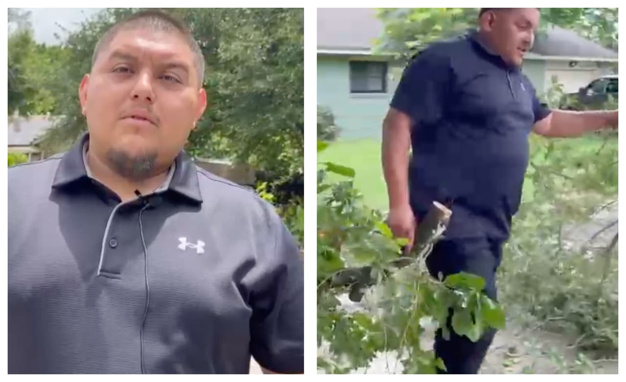 Mario Banda se encontraba en el lugar y a la hora exacta para ayudar a oficiales de bomberos a poder cumplir con su trabajo de lograr cortar una rama de árbol que con el equipo que tenían los oficiales era imposible remover.