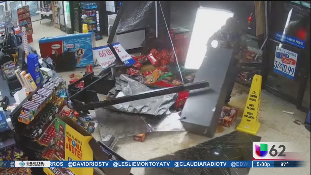 En el video se observa como dos sujetos entran con su camioneta rompiendo los vidrios de la tienda y entre ambos cargan un cajero automático que suben en la parte trasera para después huir.