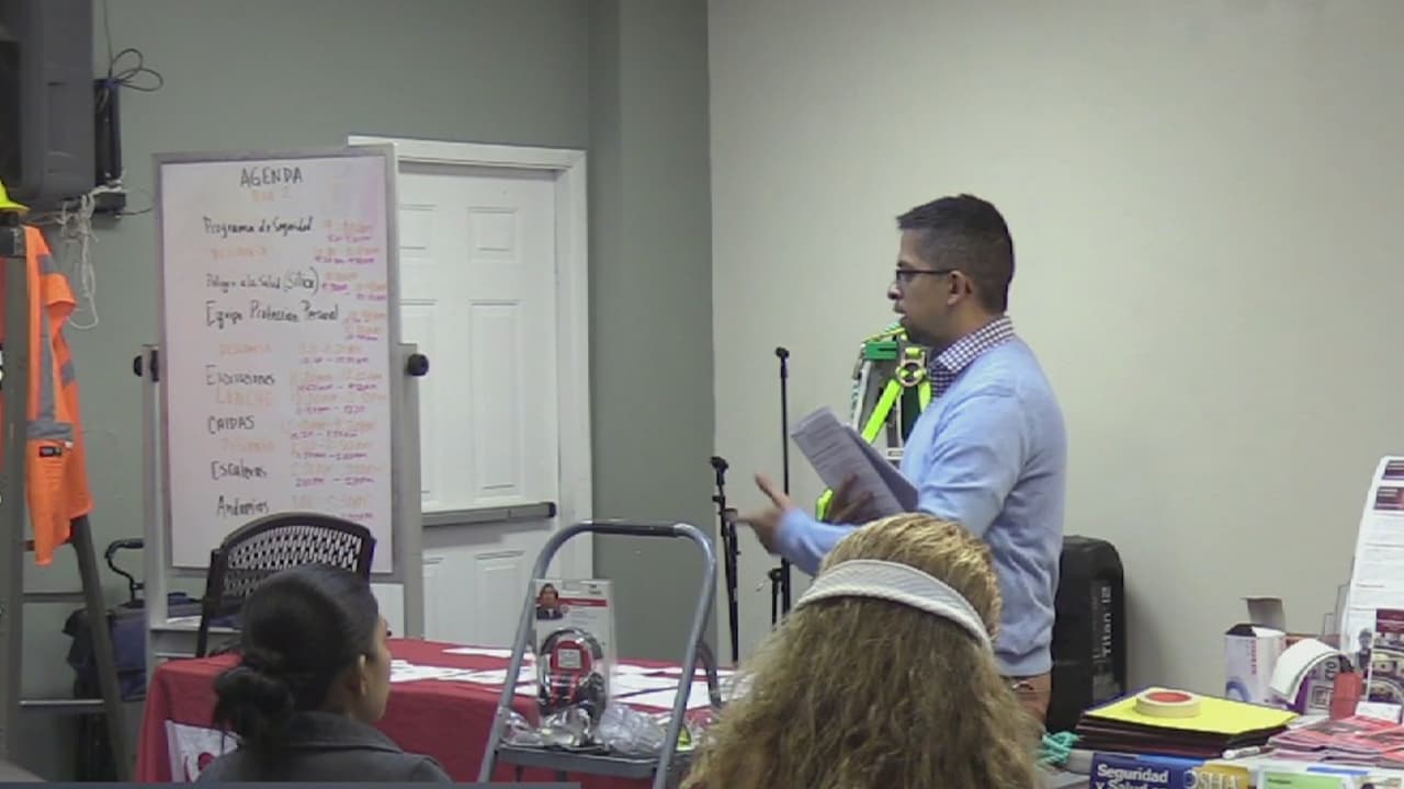 El Proyecto de Defensa Laboral imparte este taller para concientizar a los trabajadores de la industria de la construcción sobre sus derechos laborales y medidas de seguridad.