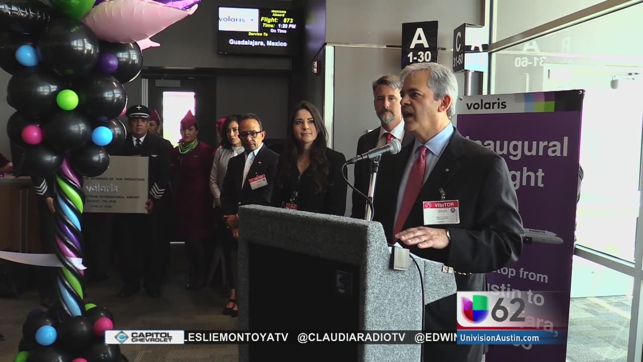 La empresa mexicana Volaris inauguró este domingo la ruta directa entre Guadalajara, México y Austin, los pasajeros viajaron con mariachi a bordo y fueron recibidos por el alcalde de la ciudad.