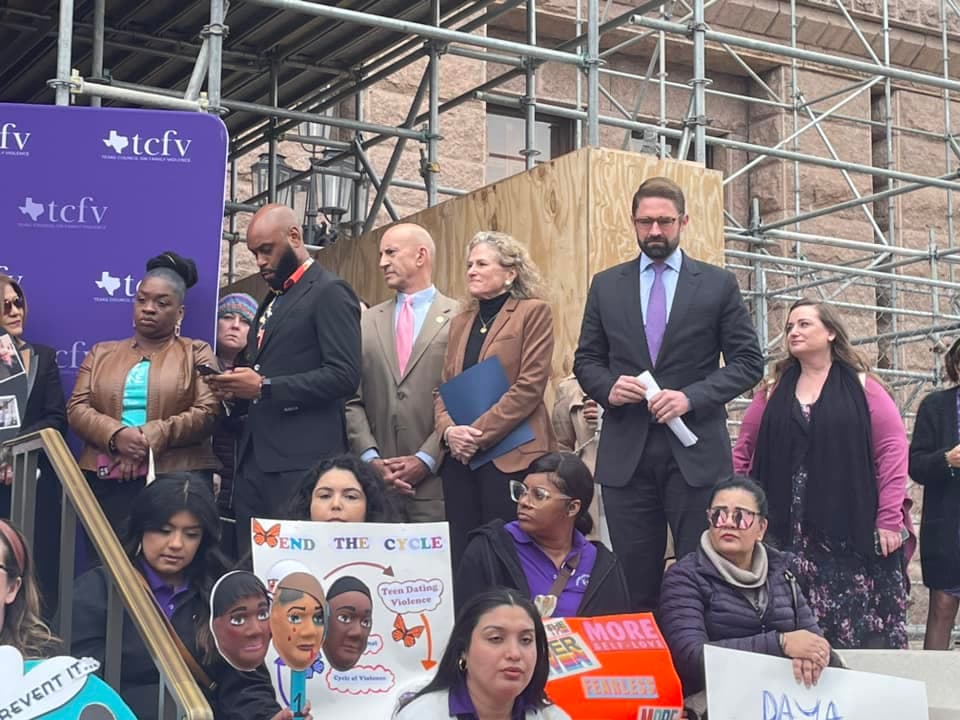 Defensores y víctimas de violencia doméstica y sexual abogan por justicia frente al capitolio de Texas