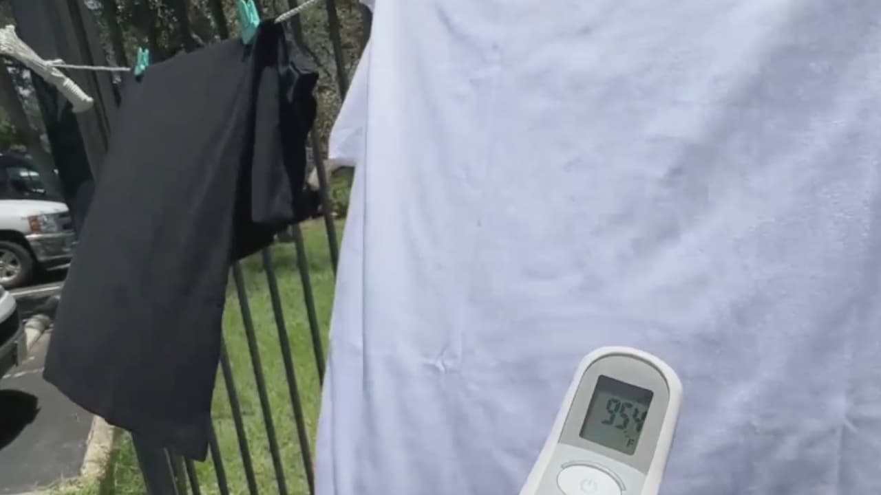 Julio y agosto suelen ser meses muy calurosos en Texas, con temperaturas que, en promedio, pueden superar los 95 grados Fahrenheit. Ante las altas temperaturas, expertos hacen una serie de recomendaciones para que las personas se protejan y mitiguen el impacto del calor. Una de ellas es el uso de prendas de vestir de ciertos colores; para aclarar dudas al respecto, el meteorólogo Orlando Peña hizo un experimento con una camiseta blanca y una negra.