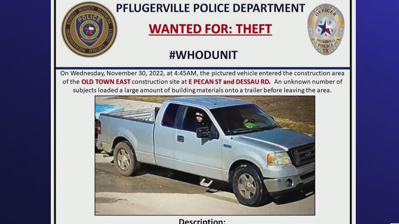 La policía de Pflugerville busca a los sospechos de robo en un sitio de construcción