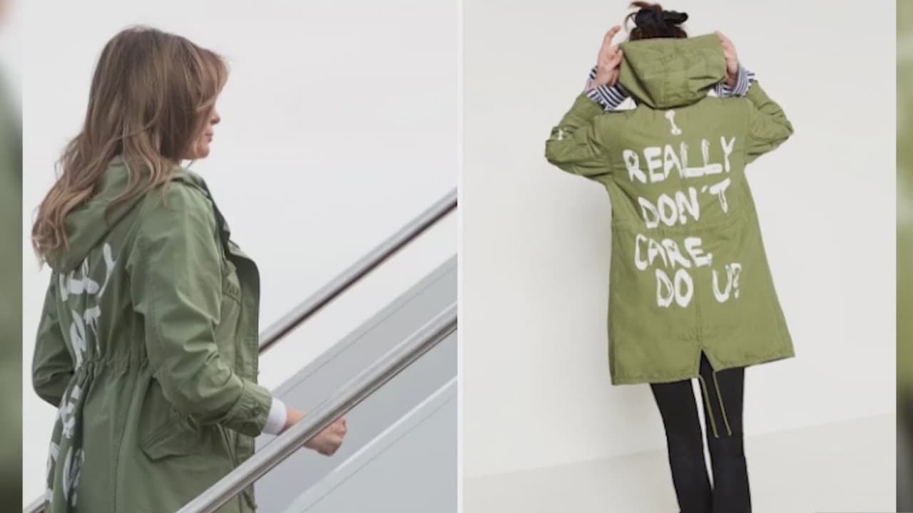 La vestimenta de la primera dama fue una noticia casi tan grande luego de que se identificara que esta tenía escrito atrás el mensaje: “Realmente no me importa, ¿y a ti?”.