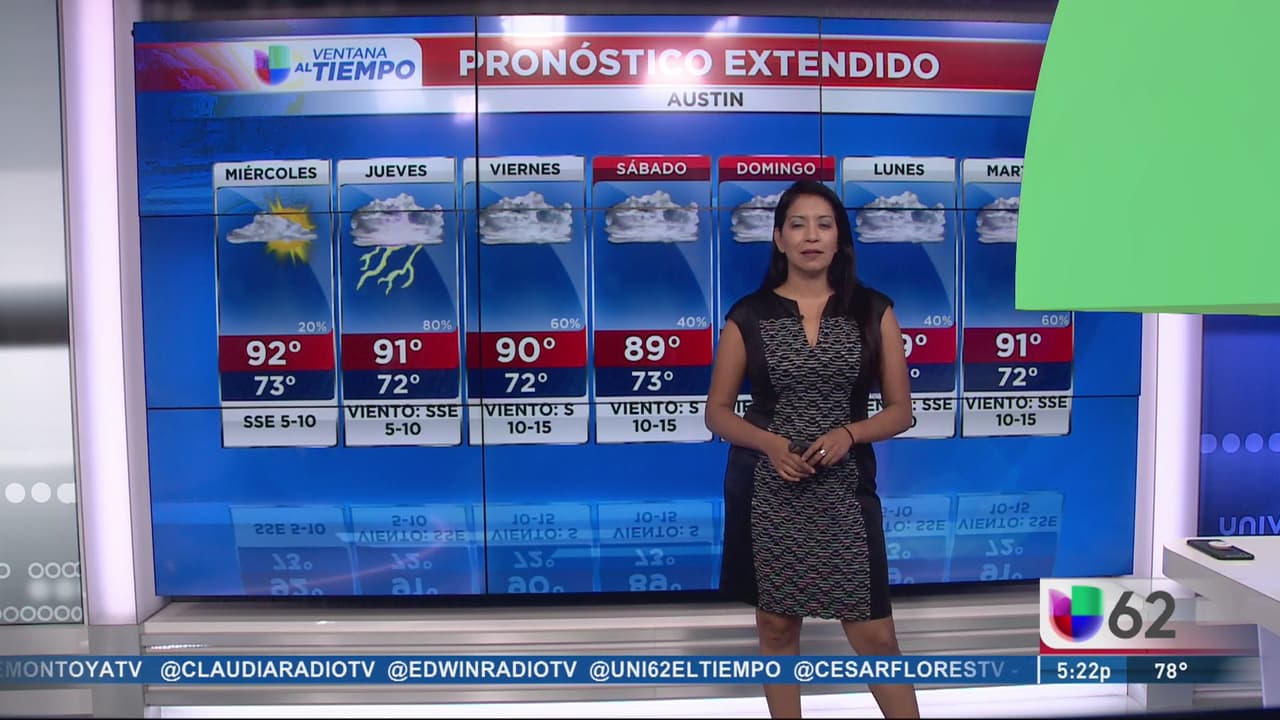 Un martes con precipitaciones al noreste del área de Austin y la probabilidad de lluvia es de un 30 por ciento por la tarde, para este miércoles se esperan lluvias por la tarde y temperaturas máximas de 92 grados.