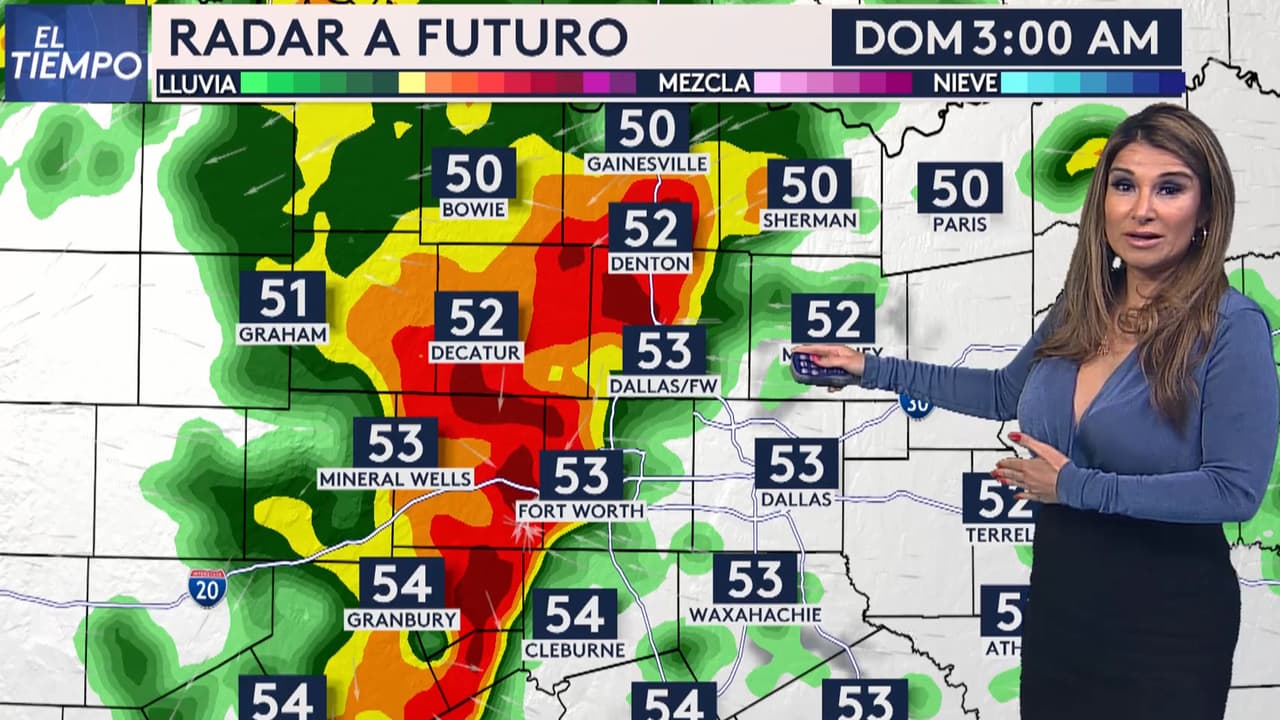 El sistema de tormentas afectará principalmente la madrugada del domingo, con lluvias fuertes en Dallas - Fort Worth, incluso el sur de la ciudad.