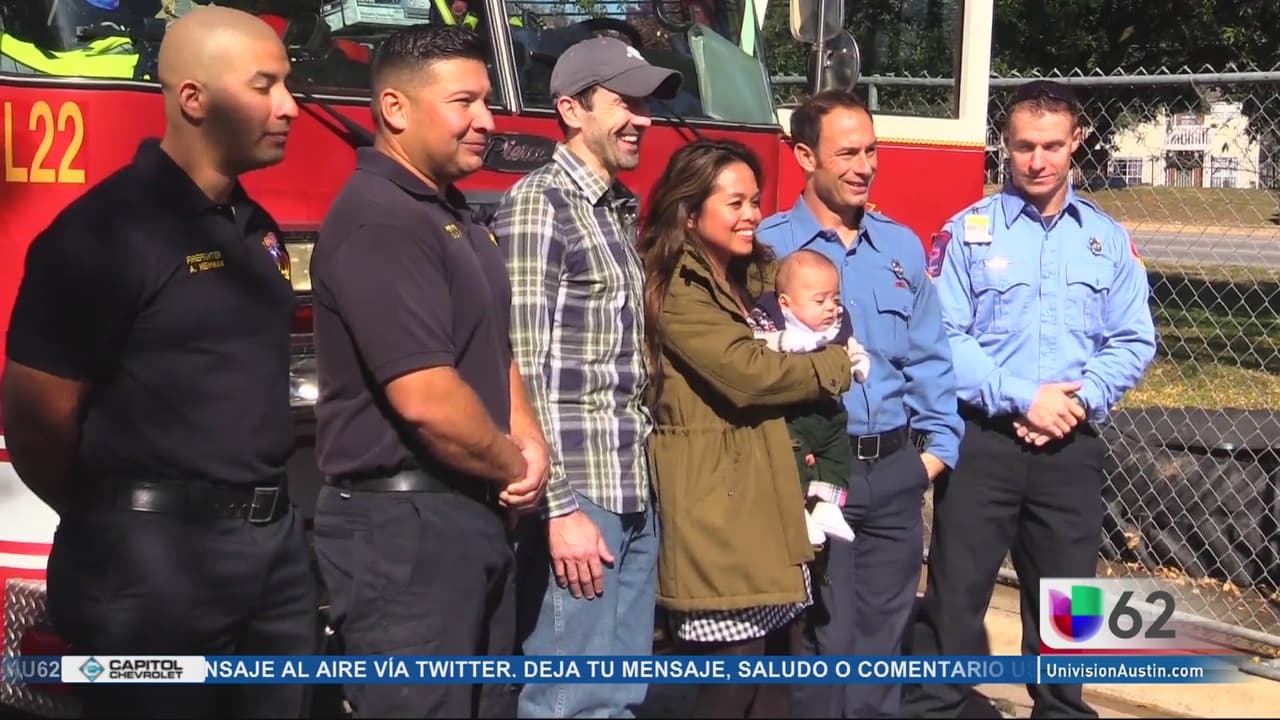Madre visita a equipo de emergencia que salvó su vida y la de su bebé en medio de un parto prematuro