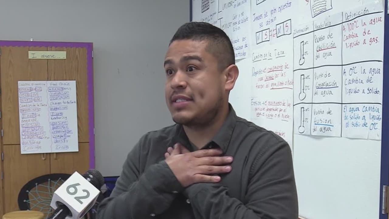 José Rodríguez, maestro de quinto año de la escuela primaria Barbara Jordan, se convirtió en héroe tras salvarle la vida a un estudiante que se estaba ahogando con la tapa de una botella. El docente resalta la importancia de saber primeros auxilios.