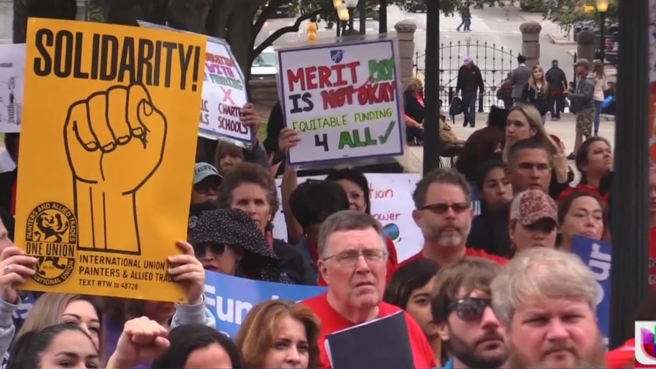 Maestros de Texas protestan para pedir un aumento de salario