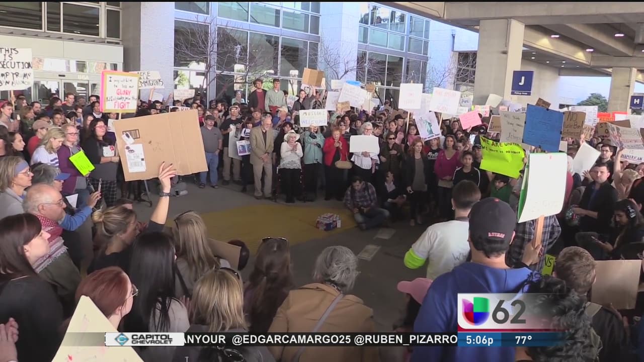 Cientos de personas se reunieron en el Aeropuerto de Austin para expresar su solidaridad con la comunidad musulmana y su disgusto ante la acción ejecutiva presentada por el presidente Donald Trump