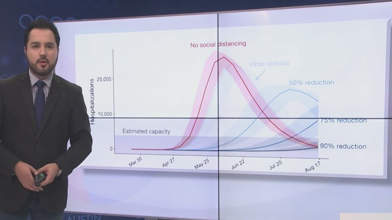 Los modelos de la Universidad de Texas muestran distintos escenarios sobre el distanciamiento social y el impacto en el caso de casos positivos de Covid-19 en el área de cobertura.
