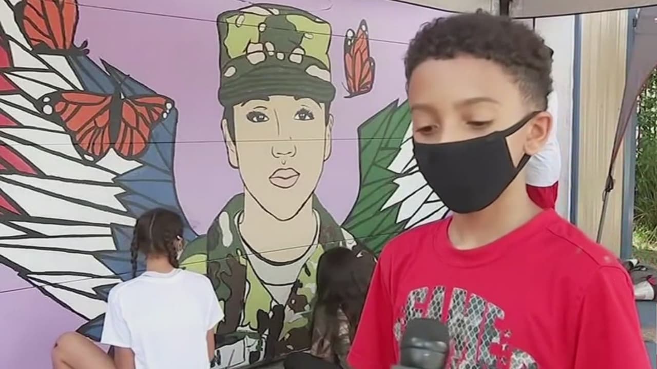 Niños realizan un mural en honor a Vanessa Guillén en la ciudad texana de Pasadena
