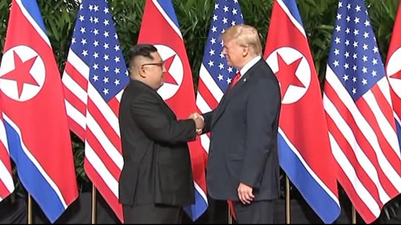 Por primera vez, un presidente estadounidense en activo y un líder de Corea del Norte se dieron la mano. Donald Trump y Kim Jong Un se saludaron para dar inicio a un histórico encuentro en Singapur este lunes (martes, hora local).