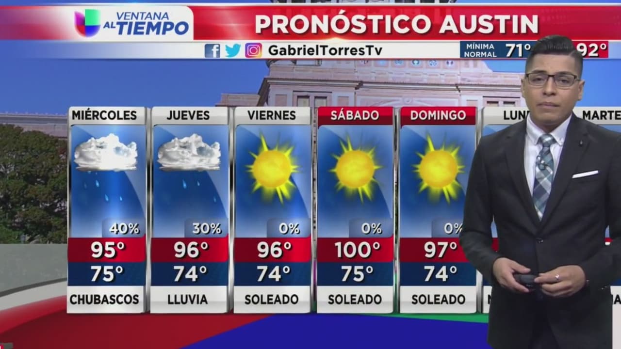 Espere temperaturas alrededor de los 97 grados Fahrenheit con vientos moderados y precipitaciones.