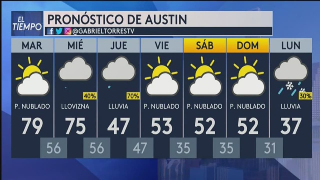 Patrón de temperaturas templadas para las próximas 48 horas en Austin