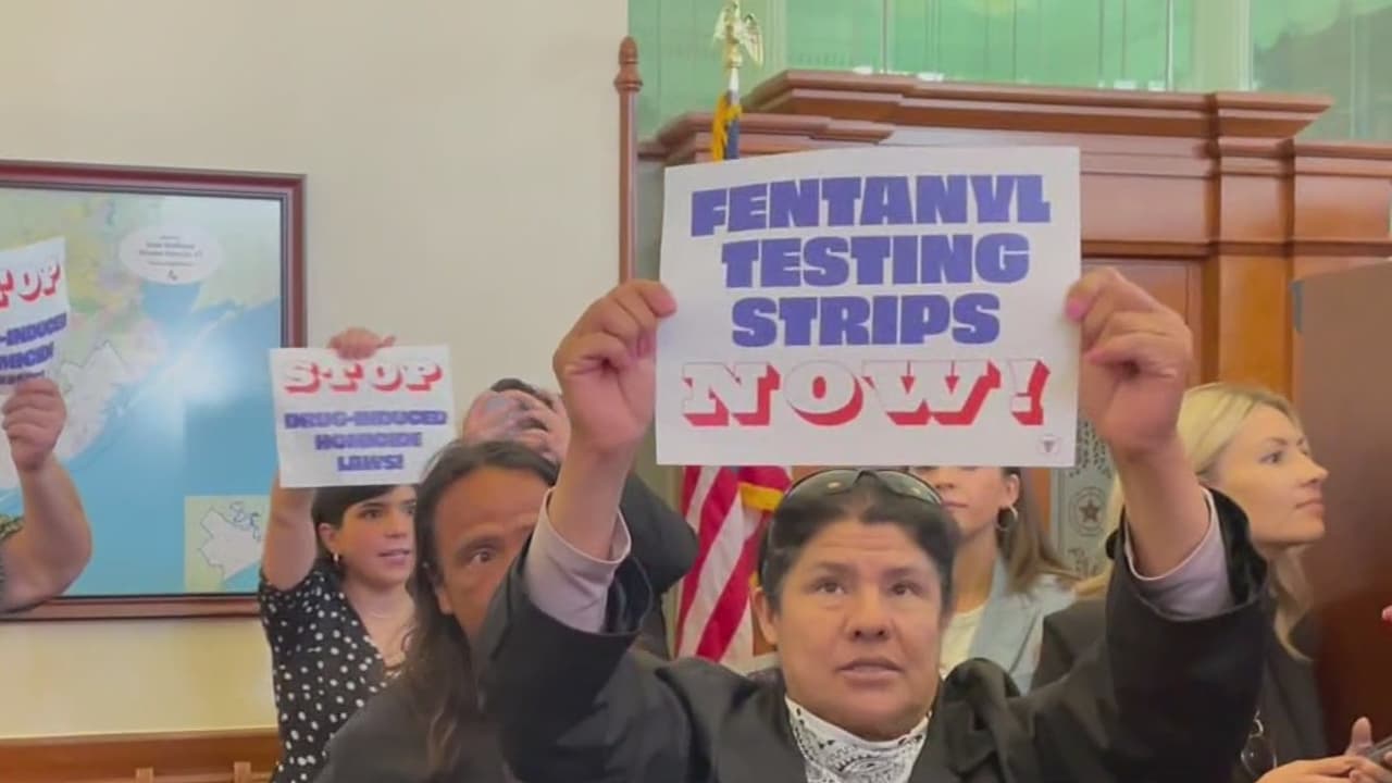 Decenas de personas protestaron en el capitolio estatal para pedir que se apruebe el proyecto de ley que legalizaría el uso de tiras de fentanilo en Texas pues señalan que esto ayudaría a reducir las muertes por sobredosis.