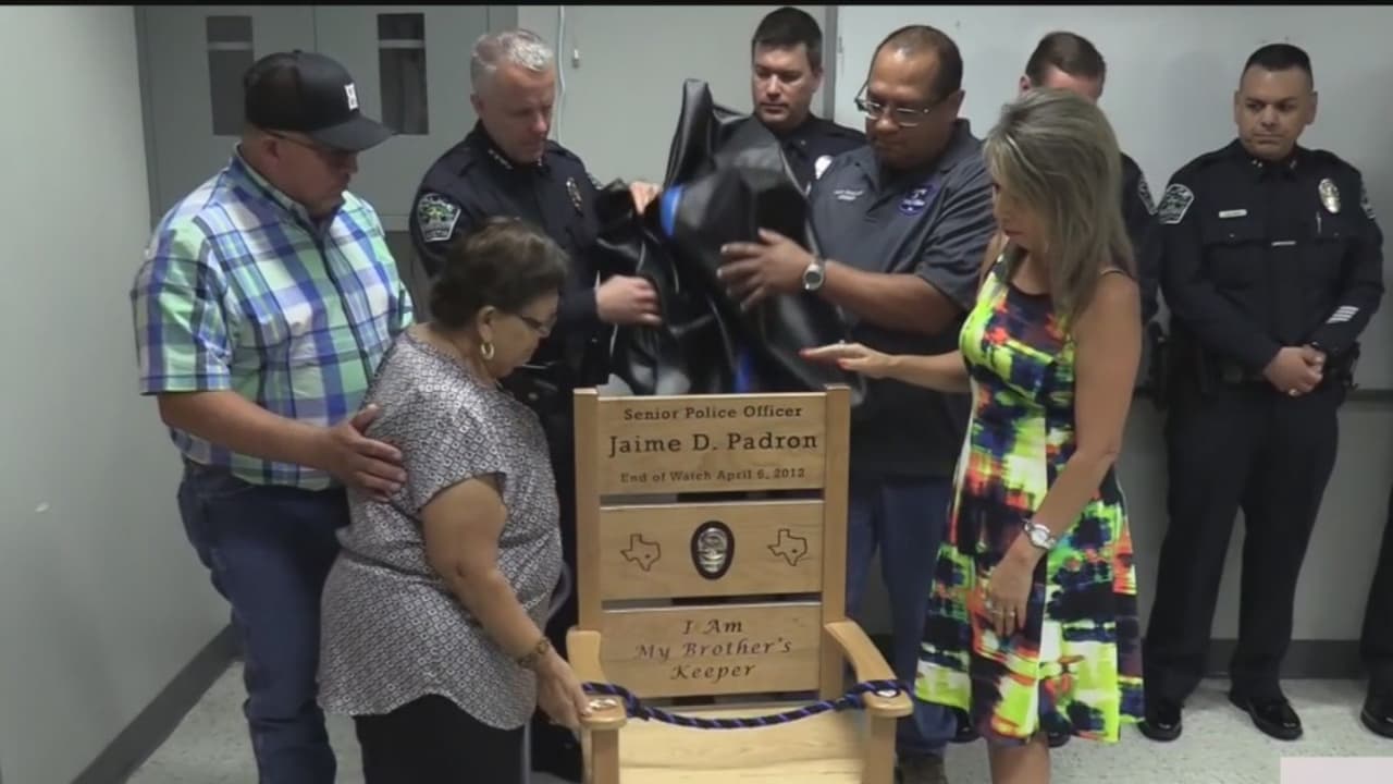 El oficial Jaime Padrón fue asesinado el 6 de abril de 2012 cuando intentaba arrestar a un hombre intoxicado en una tienda comercial, hoy a siete años de su muerte el jefe de la policía de Austin y sus compañeros honraron su memoria y colocaron una silla de honor con su nombre en el sitio donde murió.