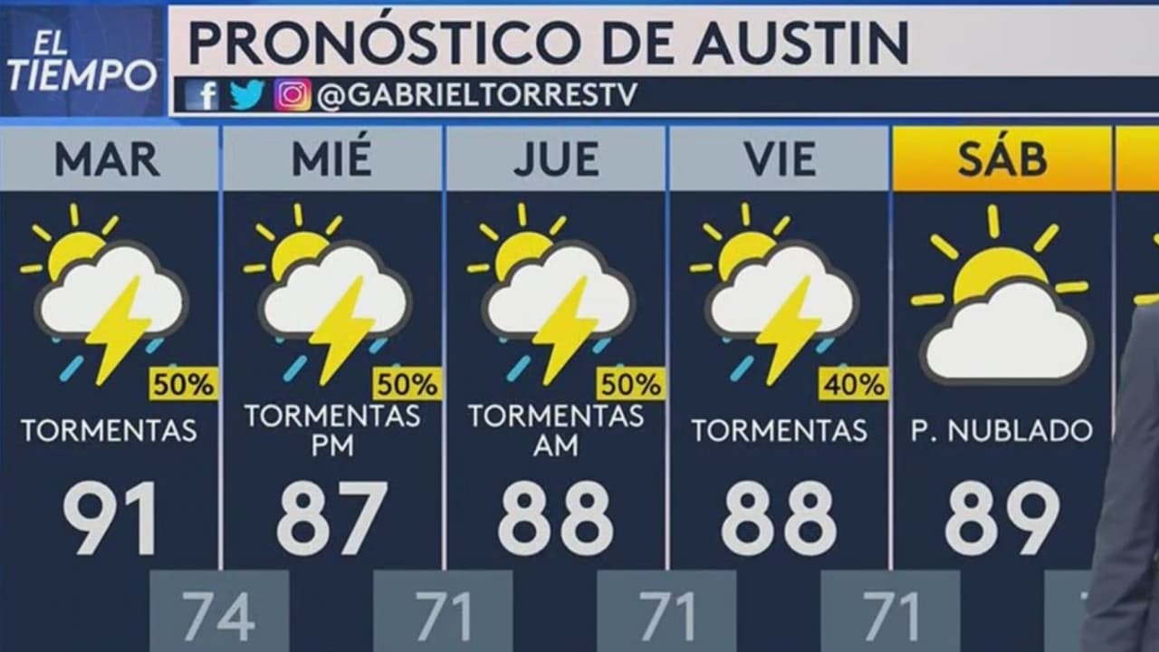 Las altas temperaturas, los cielos despejados y la humedad persisten en la capital texana, para este martes la posibilidad de lluvia será de hasta un 50% con temperaturas máximas de 91°F.