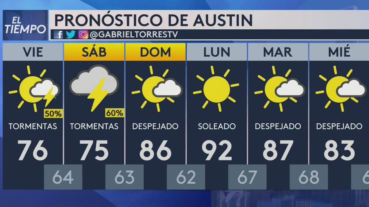 Finaliza la semana laboral con posibilidad de hasta un 50% de lluvias para el área metropolitana de Austin mientras el termómetro se mantiene con máximas de 76°F.