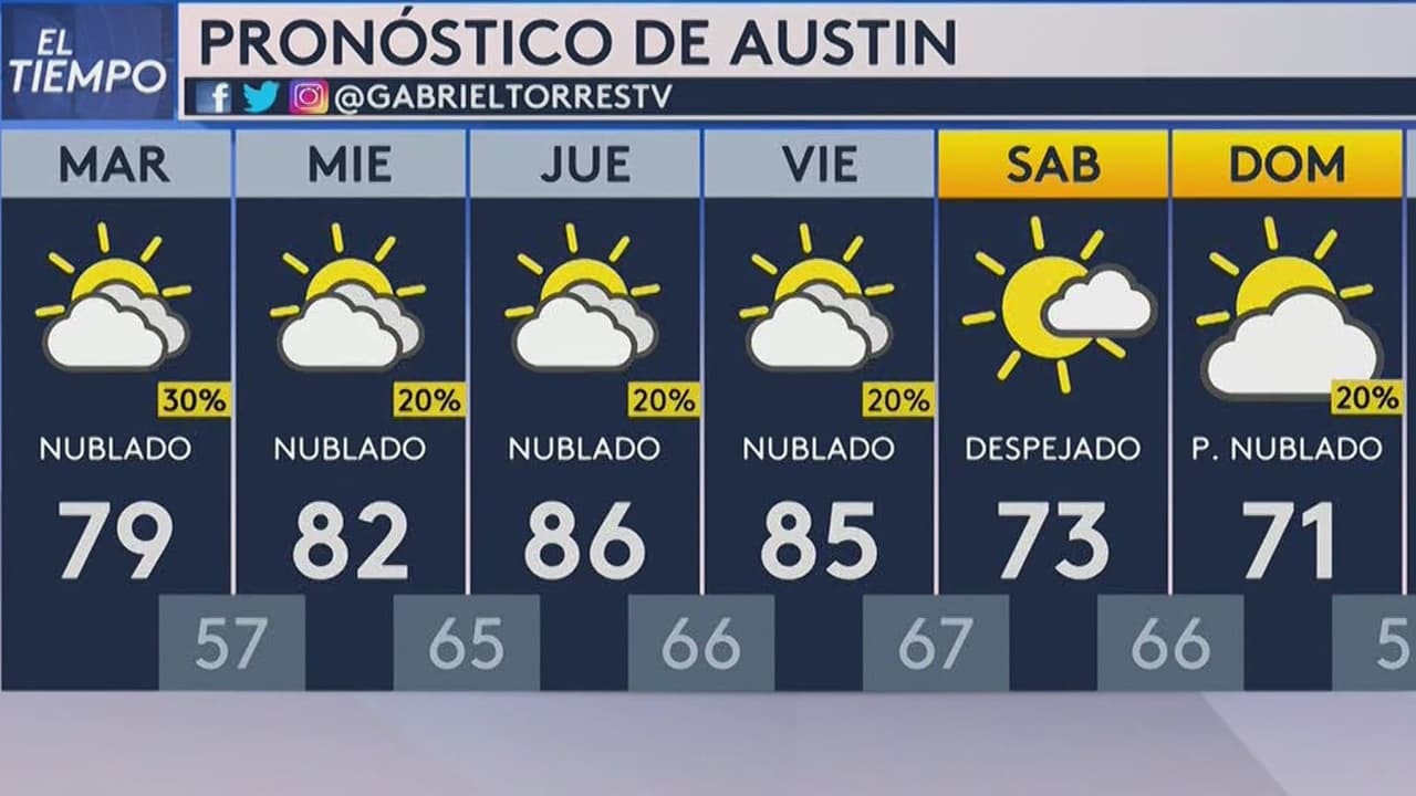 Posibilidad de lluvias dispersas y temperaturas templadas en Austin