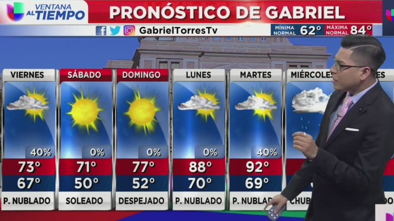 Nubosidad y posibilidad de precipitación para la capital texana durante las primeras horas de este viernes, se espera que el termómetro alcance una temperatura máxima de 73 grados Fahrenheit.