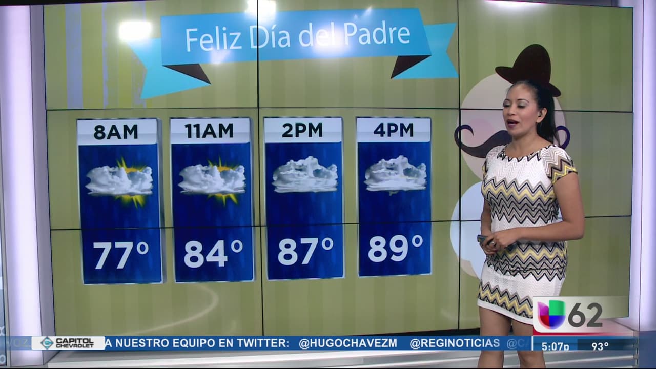 Cielos parcialmente nublados con temperaturas por encima de los 90 grados, para este Día del Padre se esperan lluvias moderadas y con el termómetro en los 89 grados. No olvide el paraguas.
