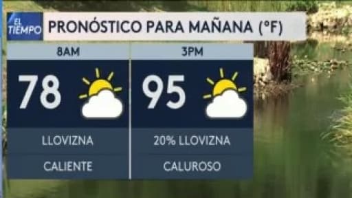 Llega el fin de semana con temperaturas cálidas en el área de cobertura y para este sábado se esperan máximas de hasta 95°F con una posibilidad del 20% de llovizna ligera.