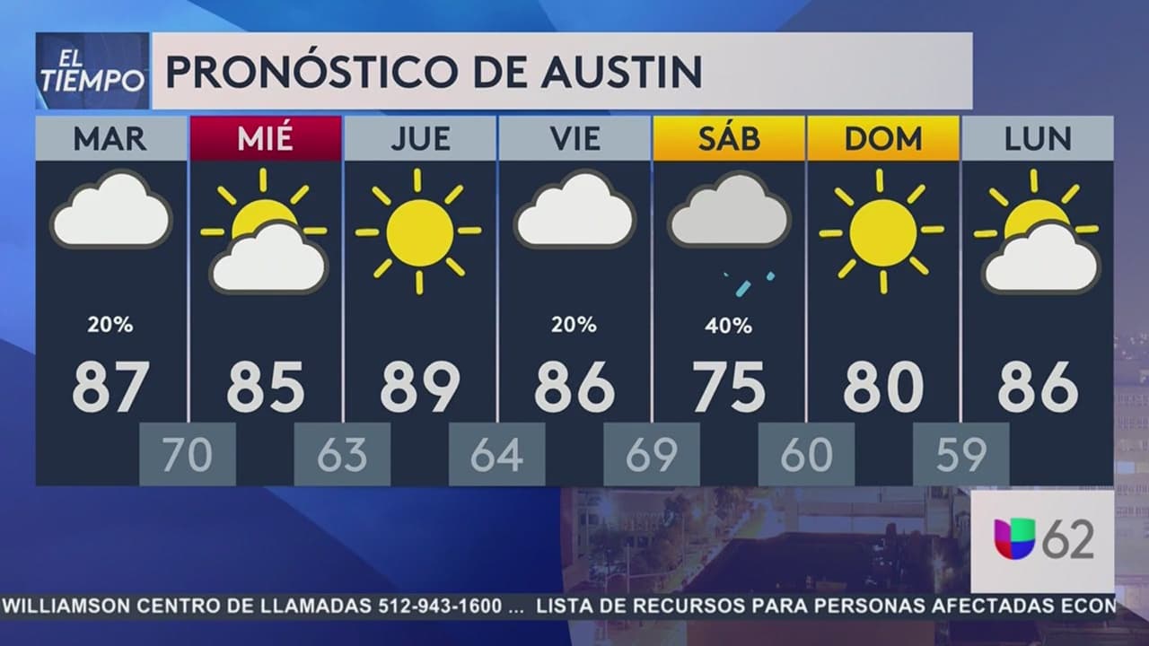 Prepárese porque este martes la posibilidad de lluvia es del 20% para el centro de Texas, mientras el mercurio alcanzará máximas de 87°F.