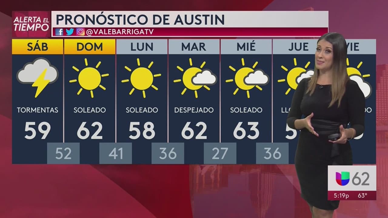 Prepare su paraguas porque este sábado se pronostican lluvias en la capital texana durante casi todo el día con temperaturas máximas de 59°F, pero para el domingo se esperan cielos despejados y máximas en los 62°F.