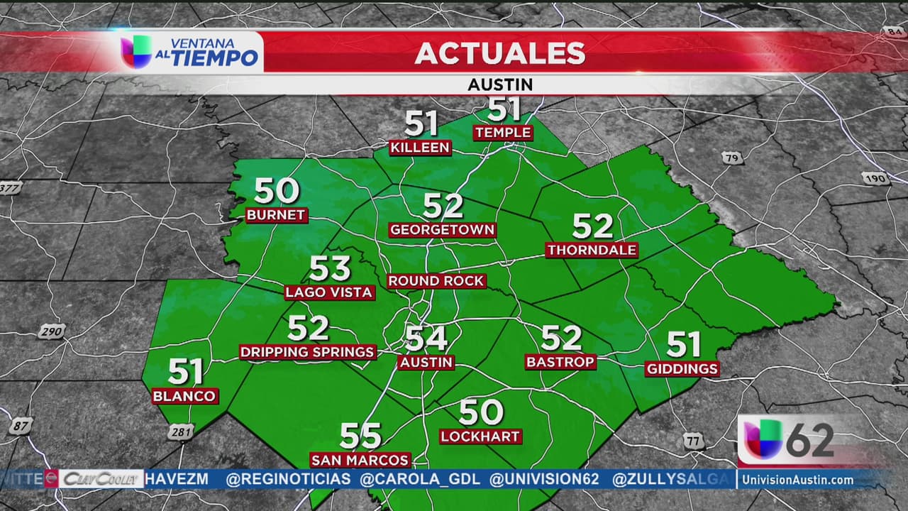Continúan los cielos nublados y temperaturas frescas en la región de Austin. La temperatura continuará alrededor de los 56 grados.