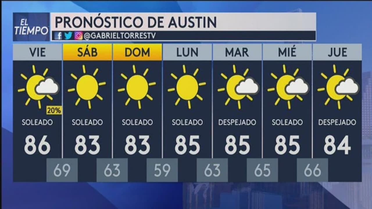 Durante la madrugada del viernes hay probabilidades de lluvias aisladas. A lo largo de la jornada se esperan temperaturas máximas de 86 grados, con periodos soleados.