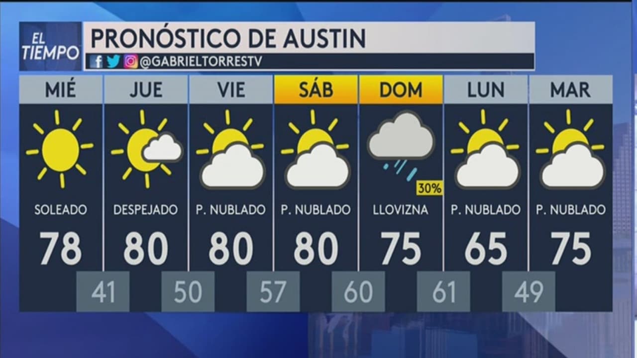 Se espera un día con cielos despejados y soleados en la capital texana, sin embargo, las temperaturas serán frescas con máximas de 78°F. Se prevé que para el fin de semana regresen las lluvias a la región.