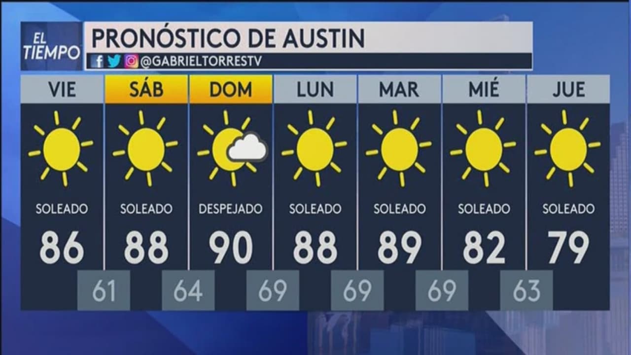Finaliza la semana laboral con condiciones secas en la capital texana, se esperan temperaturas máximas de 86°F mientras para el fin de semana se esperan condiciones similares.