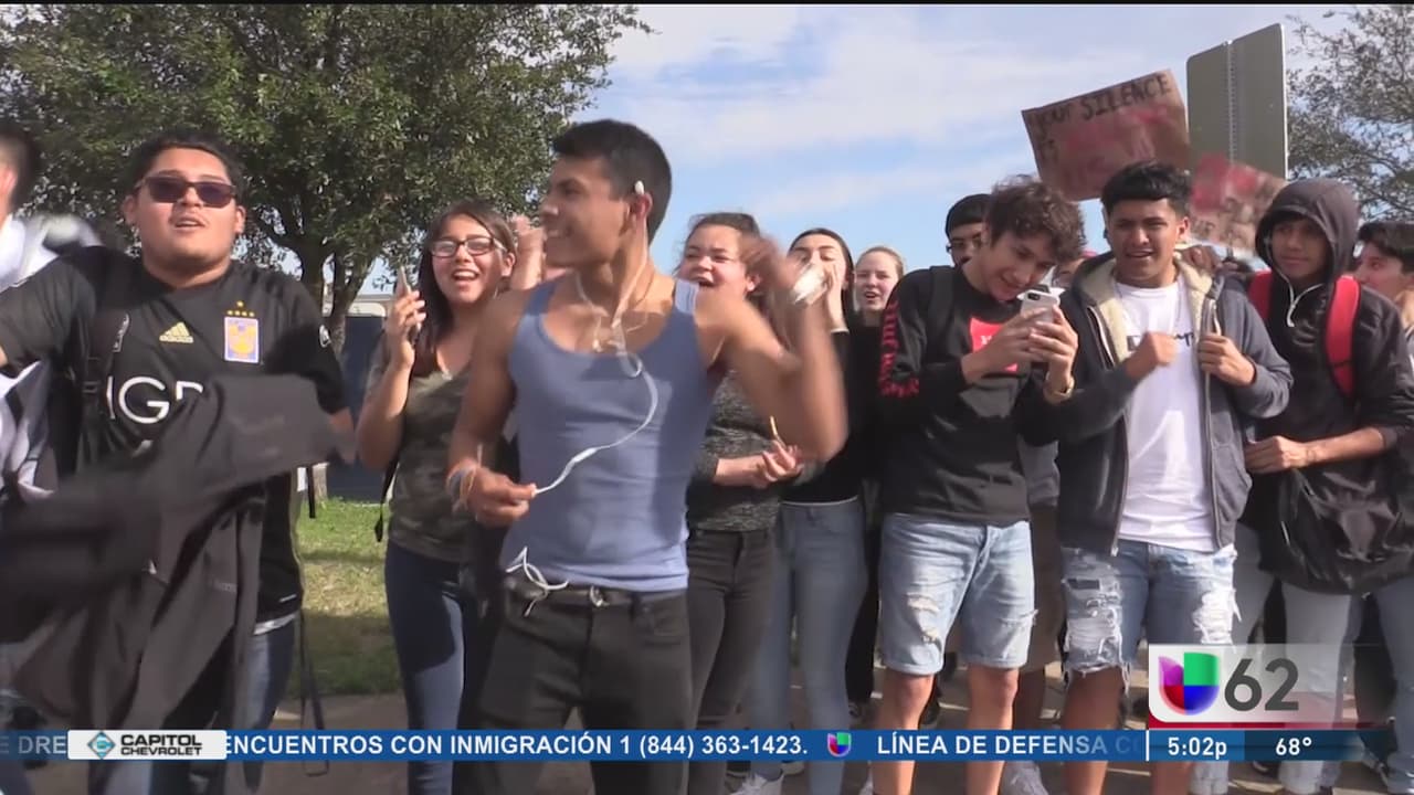 Protestan estudiantes de la preparatoria Akins para pedir un control de armas
